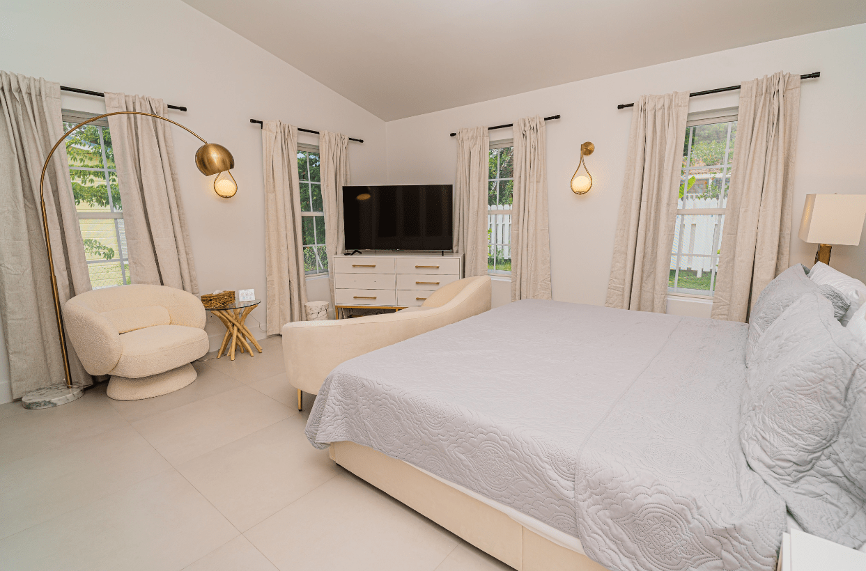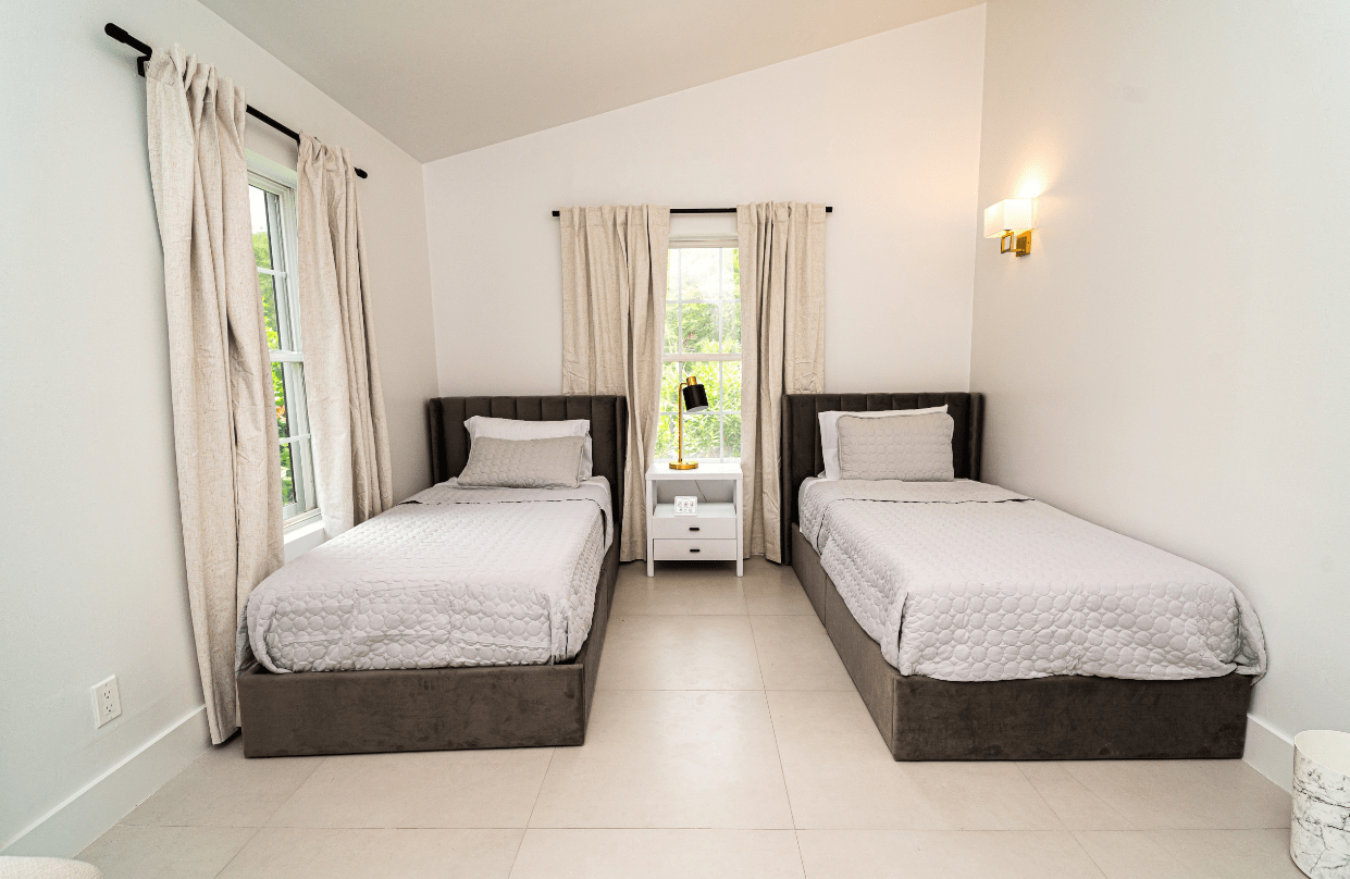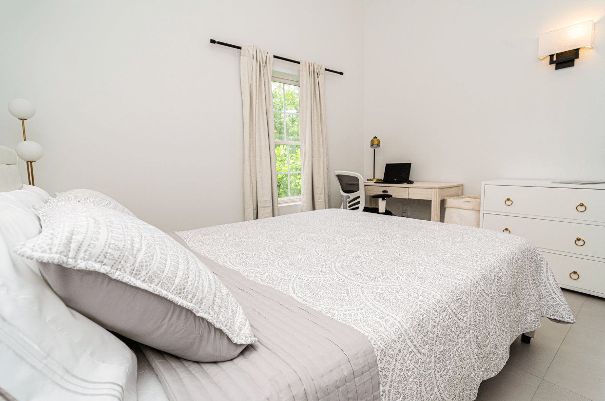 Each of the four spacious bedrooms is uniquely styled while maintaining the villa’s cohesive design theme: