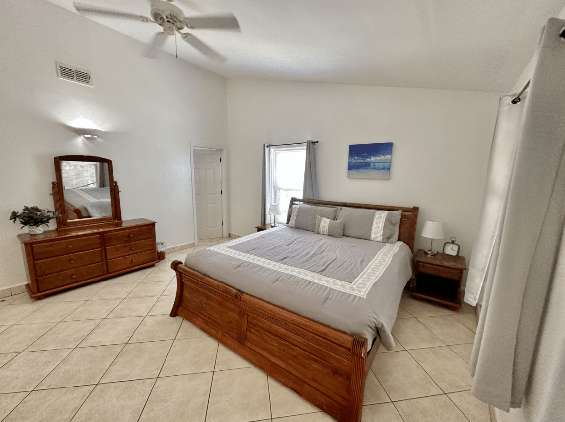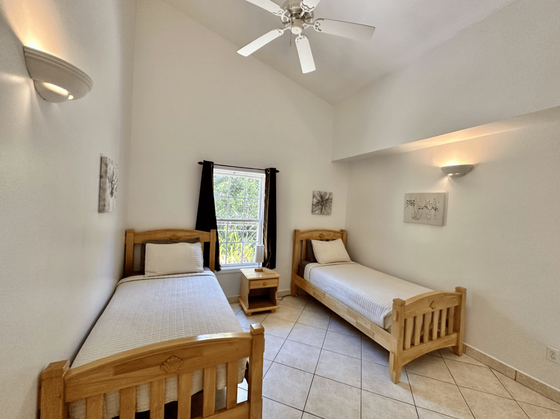 This detached villa has central air conditioning and ceiling fans in every room. It also has a utility room with a washing machine and internet connectivity.