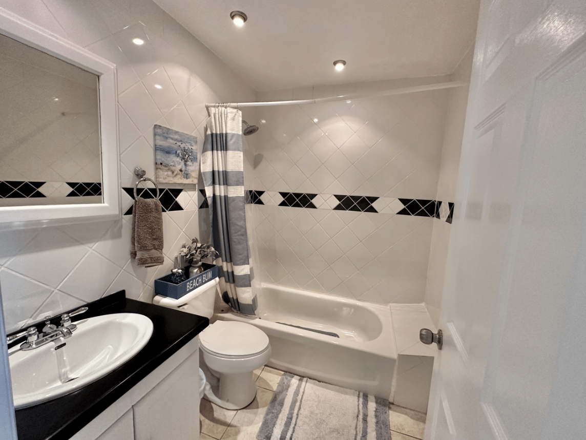 Each of the generously proportioned four bedrooms is tastefully decorated in clean light shades with built-in wardrobes. The master has a king-sized bed and an attractive ensuite with a bathtub and separate shower cubicle. Bedrooms two and three each have a queen-sized bed and the fourth bedroom has two single beds. Servicing the other three bedrooms are two full bathrooms.